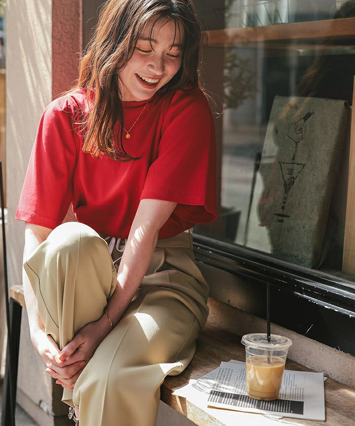 着用 / サイズ:M カラー:レッド、オフホワイト、ライトグリーン、ベージュ、杢グレー、ブラック