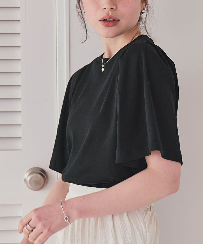 ・ボリューム感のあるタックスリーブが大人可愛い半袖トップス