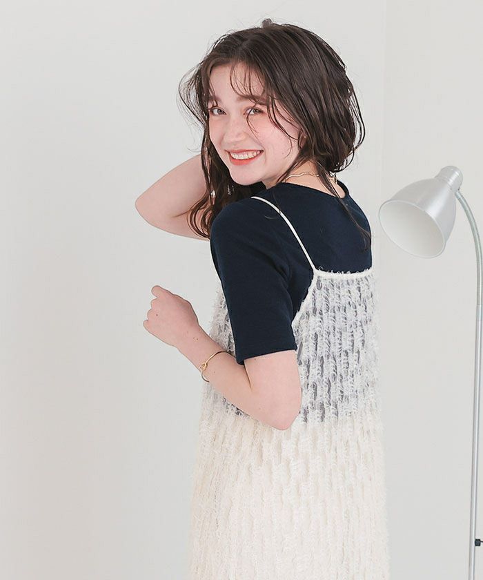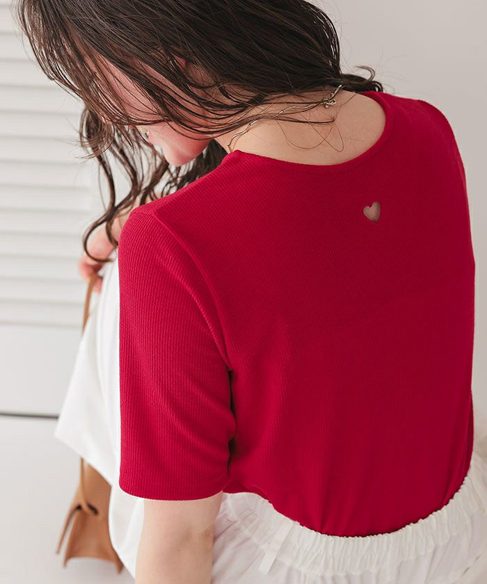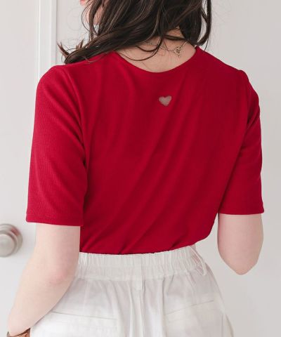 ・首元にほどこしたハートのカットアウトがアクセントのハーフスリーブトップス