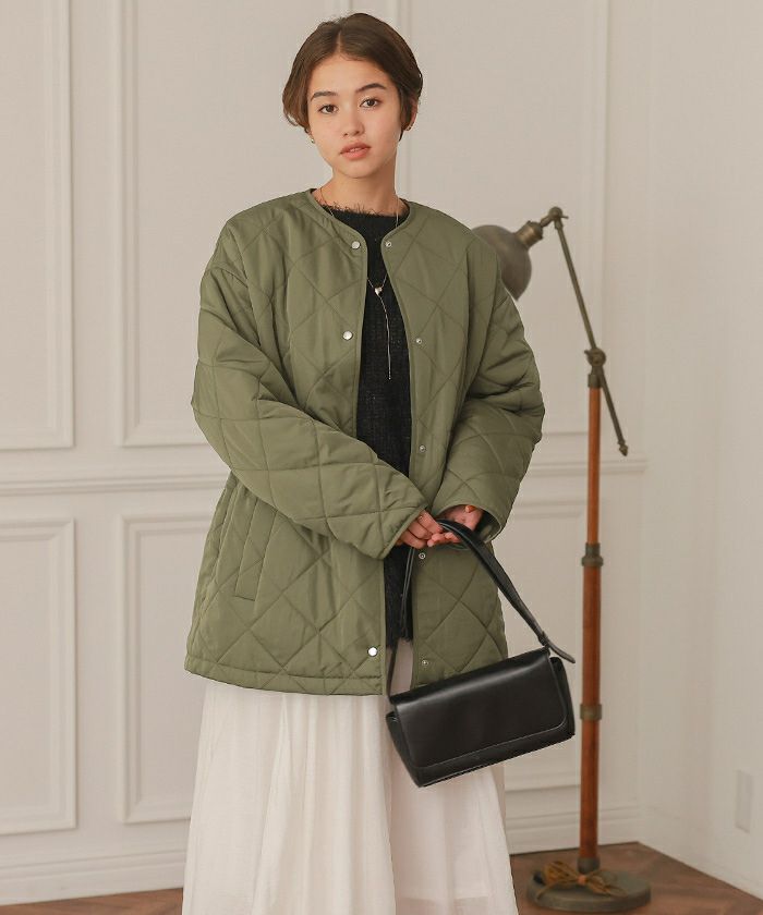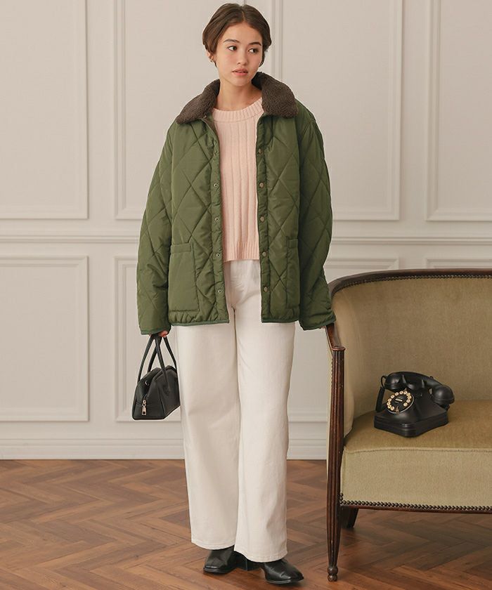 配色襟付きキルティングジャケット