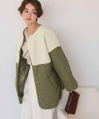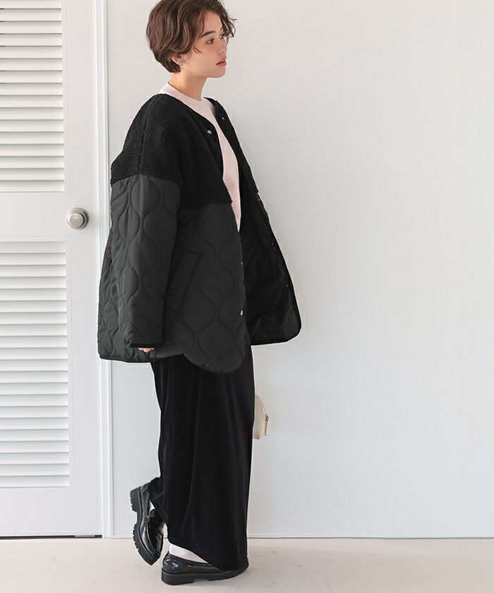 ・マットなキルティング生地と、ふんわりボアの切り替えが表情豊かな1枚