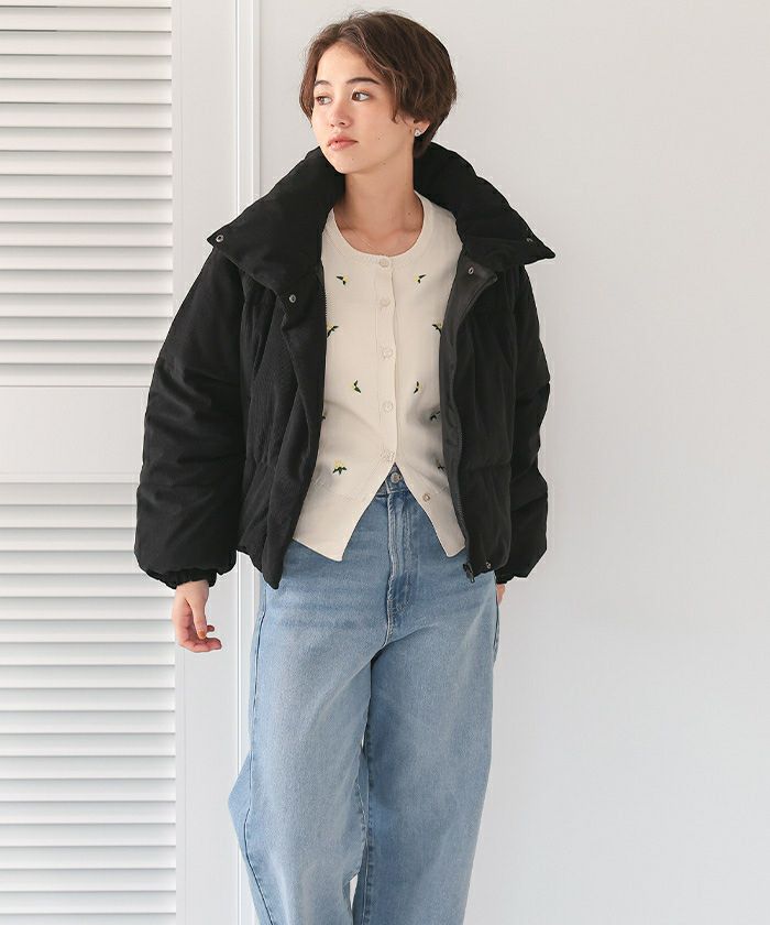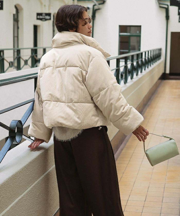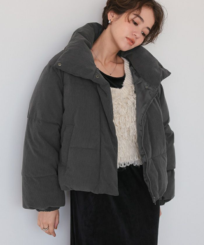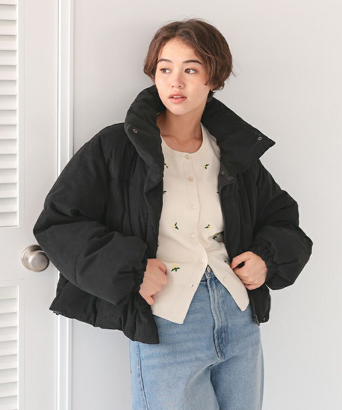 ・季節感たっぷりのコーデュロイ素材で仕上げたフェイクダウン。軽やかで暖かな着心地が魅力