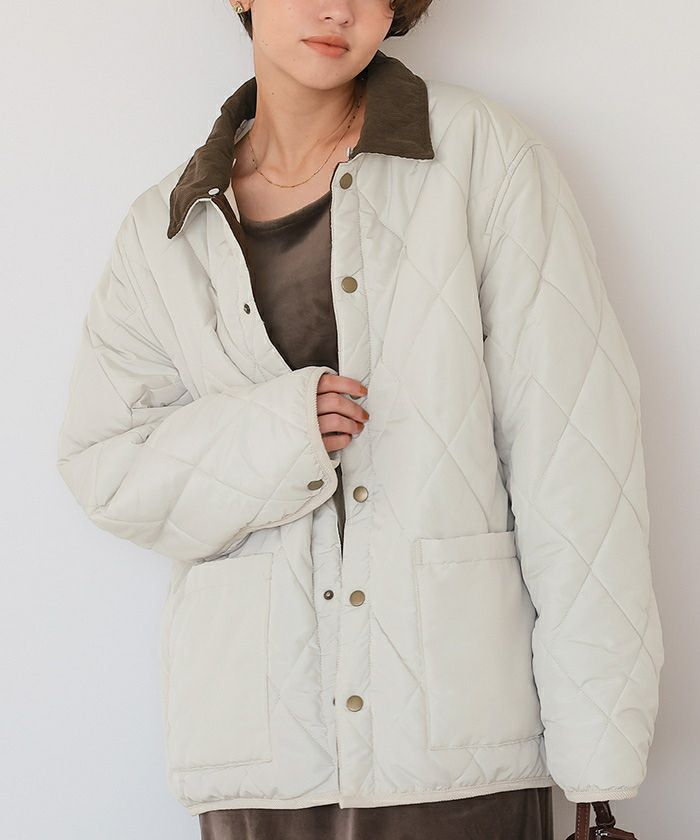 配色襟付きキルティングジャケット
