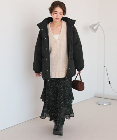 ・裾は絞れる仕様になっており、女性らしい丸いシルエットにしても着れる