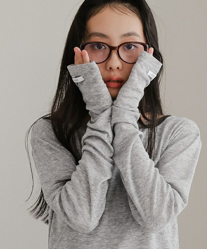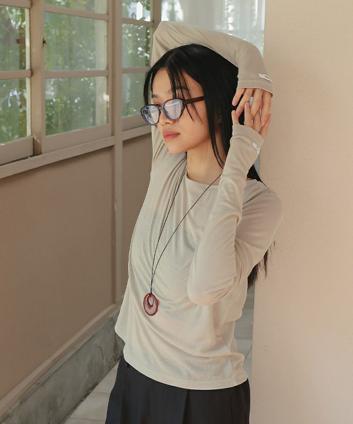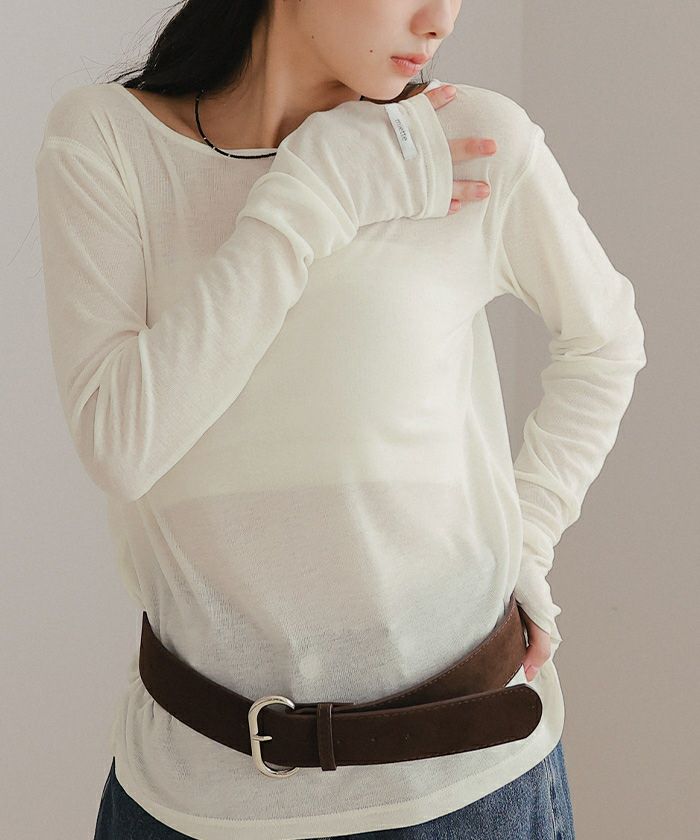 ・透け感のある素材の袖口のデザインがポイントのフィンガーホールシアートップス