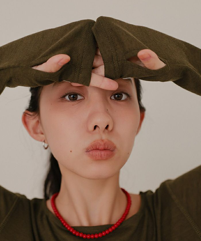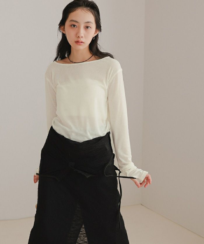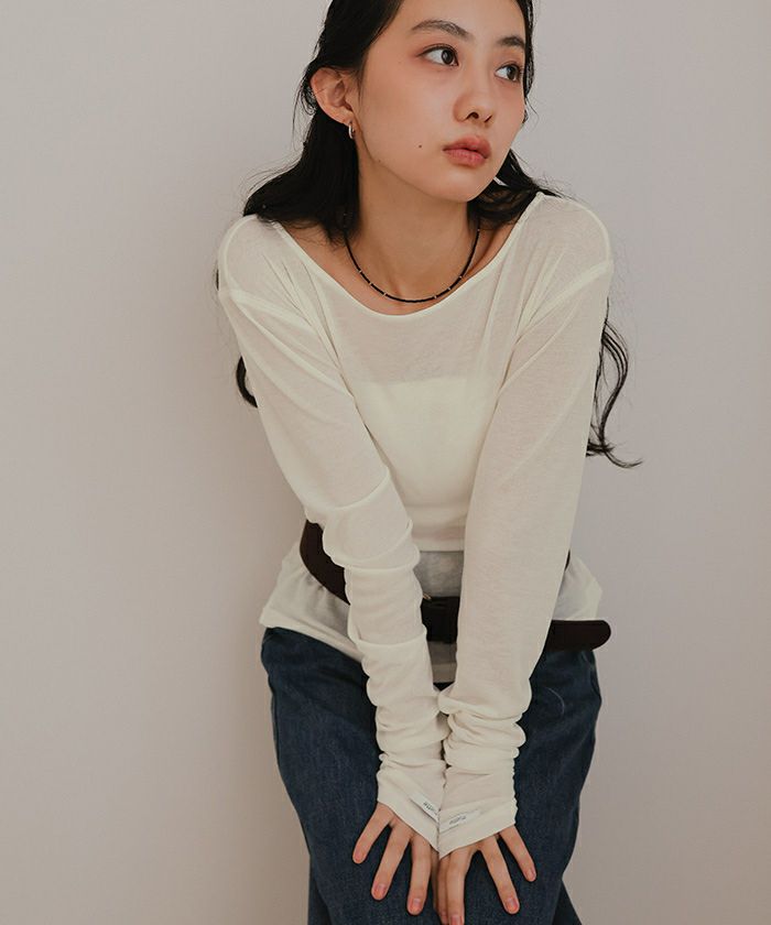 ・程よい透け感のある生地なので1枚でトップスでもインナーとしても◎