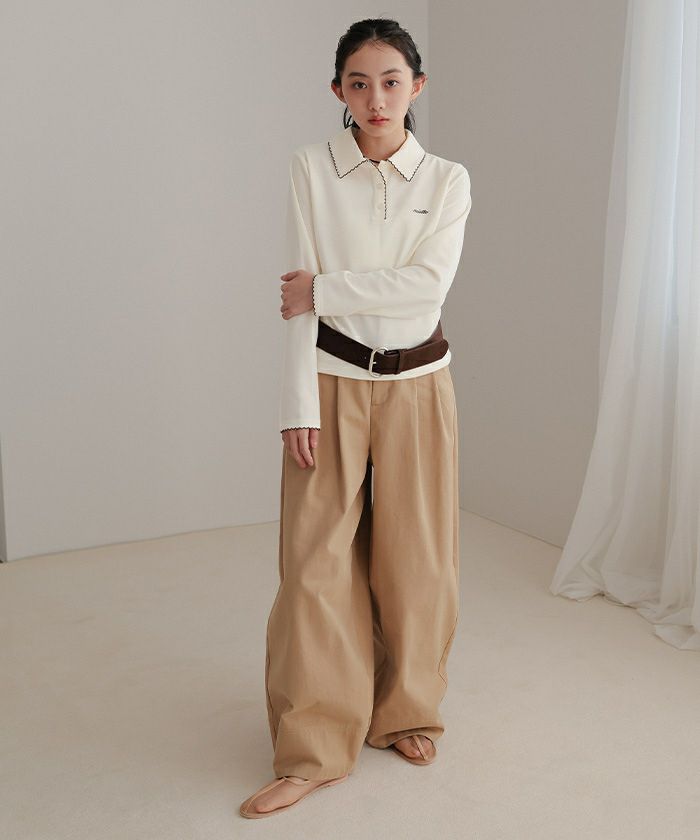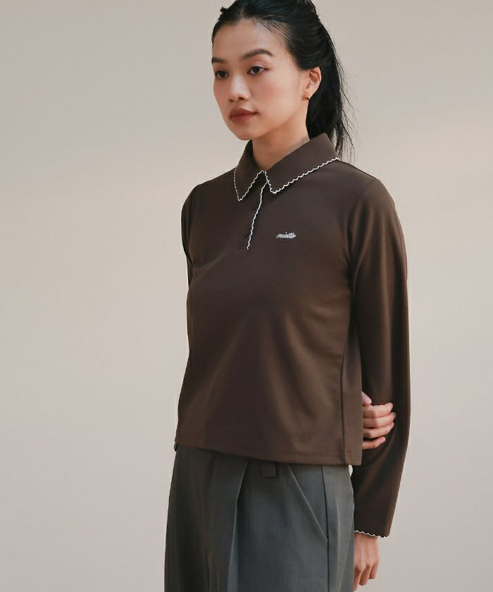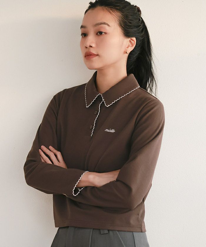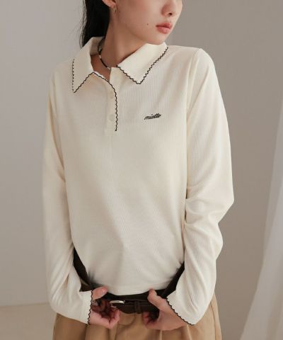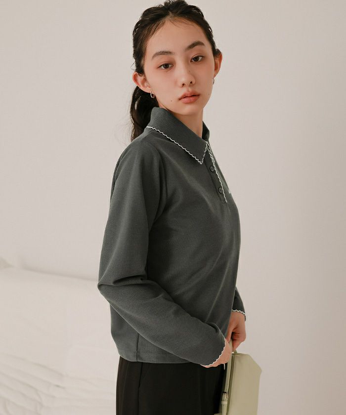 ・襟と袖口と前立てにあしらった配色のピコ刺繍がポイントのポロシャツ