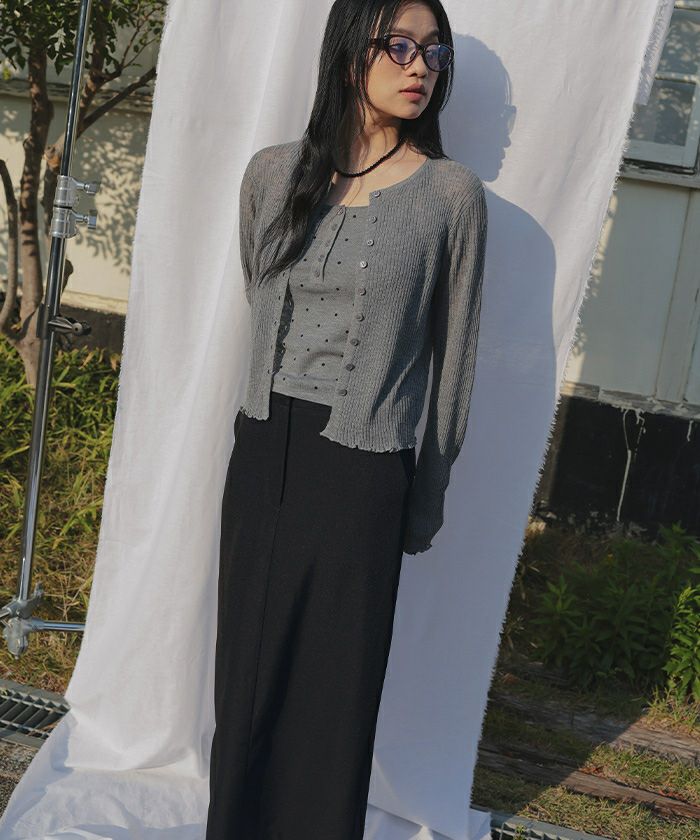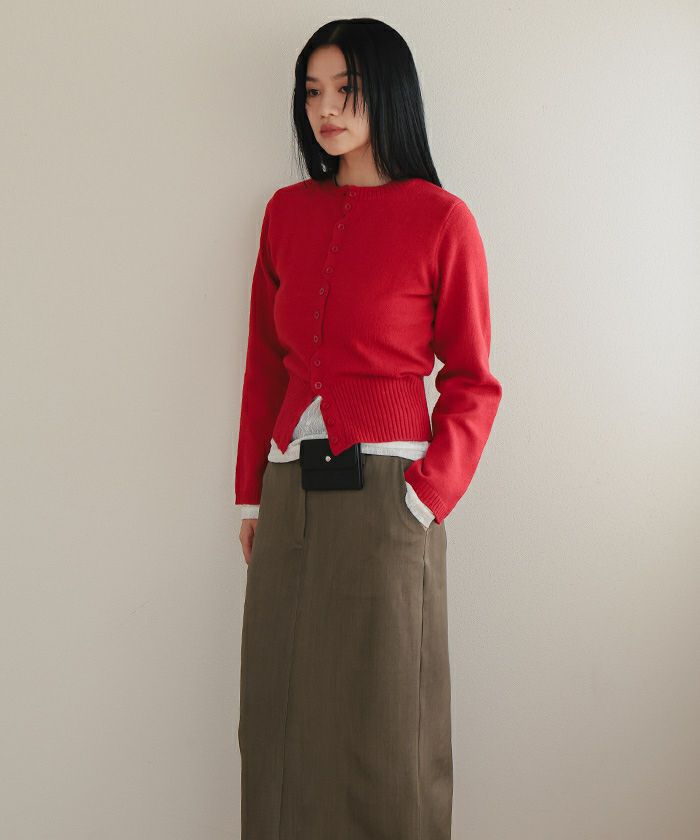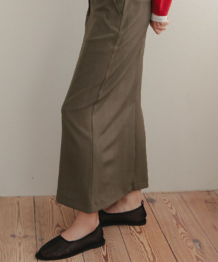 ・腰回りはすっきりと、裾にかけてストレートに落ちるシルエットが上品でスタイルアップ効果◎