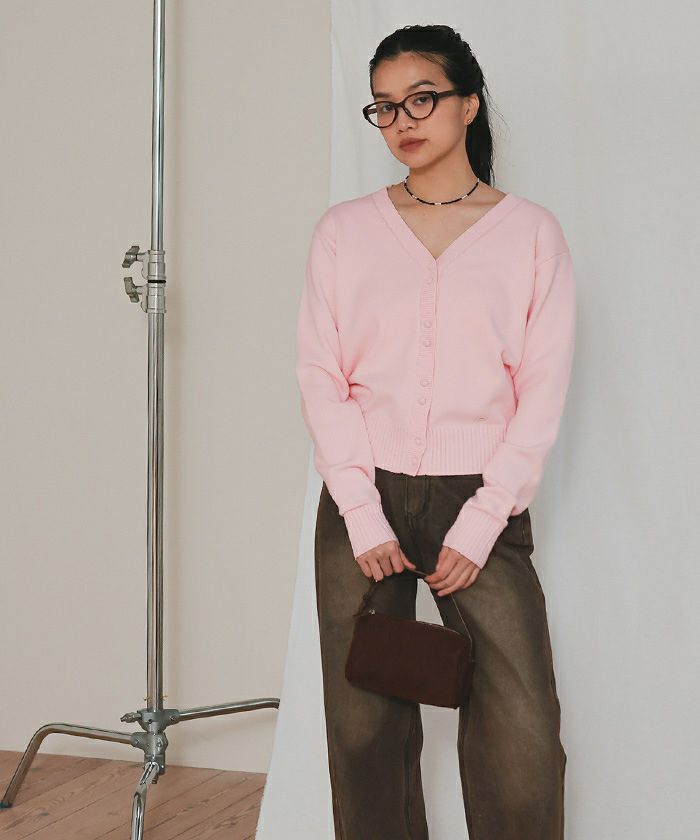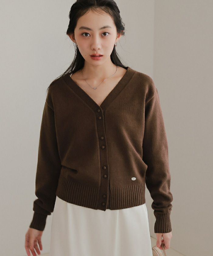 くるみボタンVネックニットカーディガン【miette ミエット】