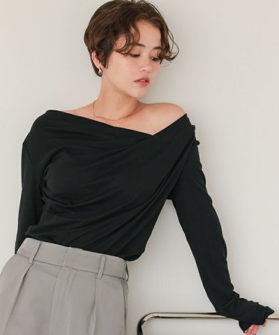 オフショルダーロングスリーブTシャツ【メール便可/100】