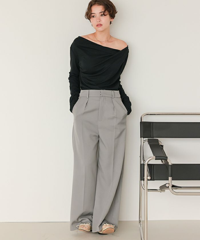 ・こなれ感のある肌見せを叶えてくれるオフショルダーロングTシャツ