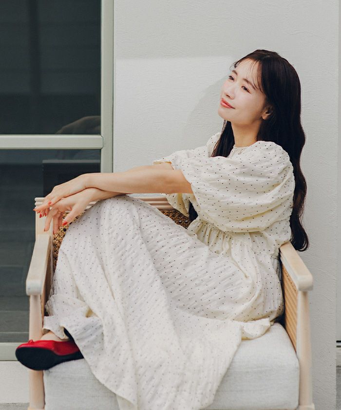 ・エアリーに揺れる軽やか素材が、着るだけで“ふわっと可愛い”をまとえるドットワンピース