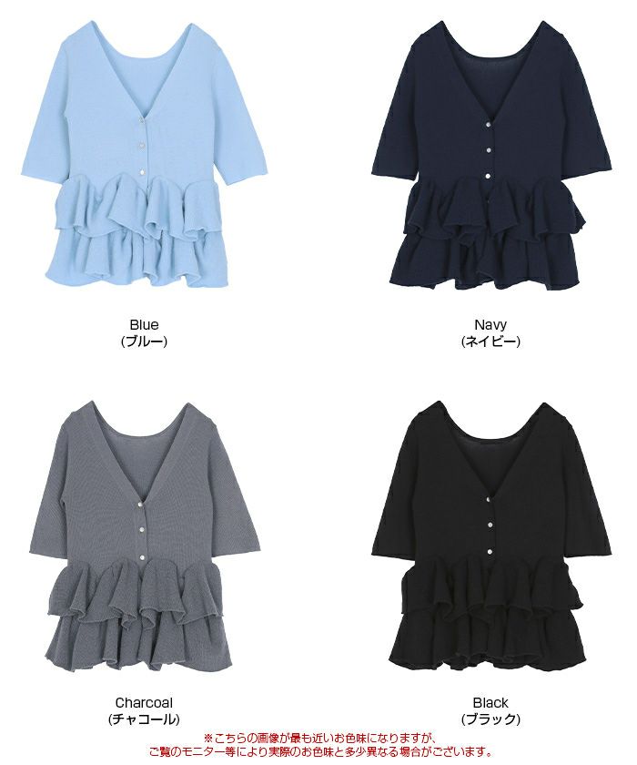 ハーフスリーブフリルヘムニットカーディガン
