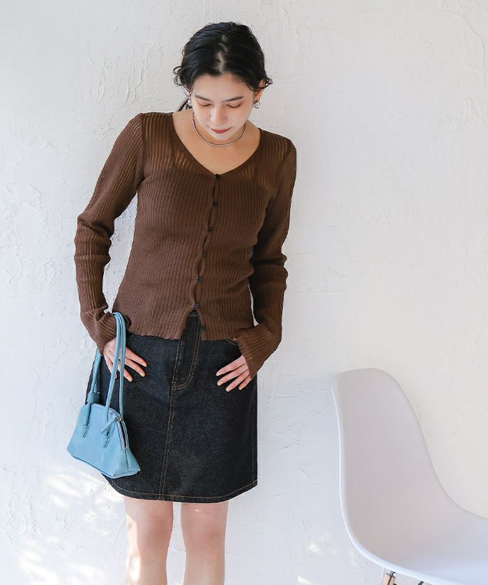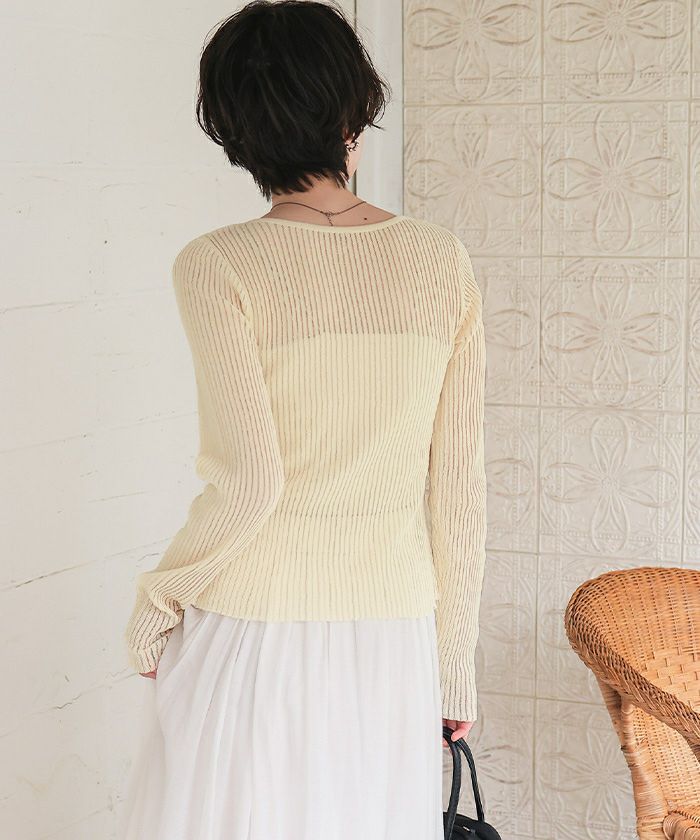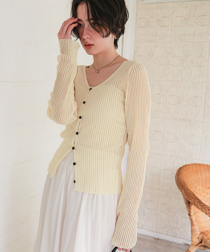 UVケア/ウォッシャブルシアーリブニットカーディガン