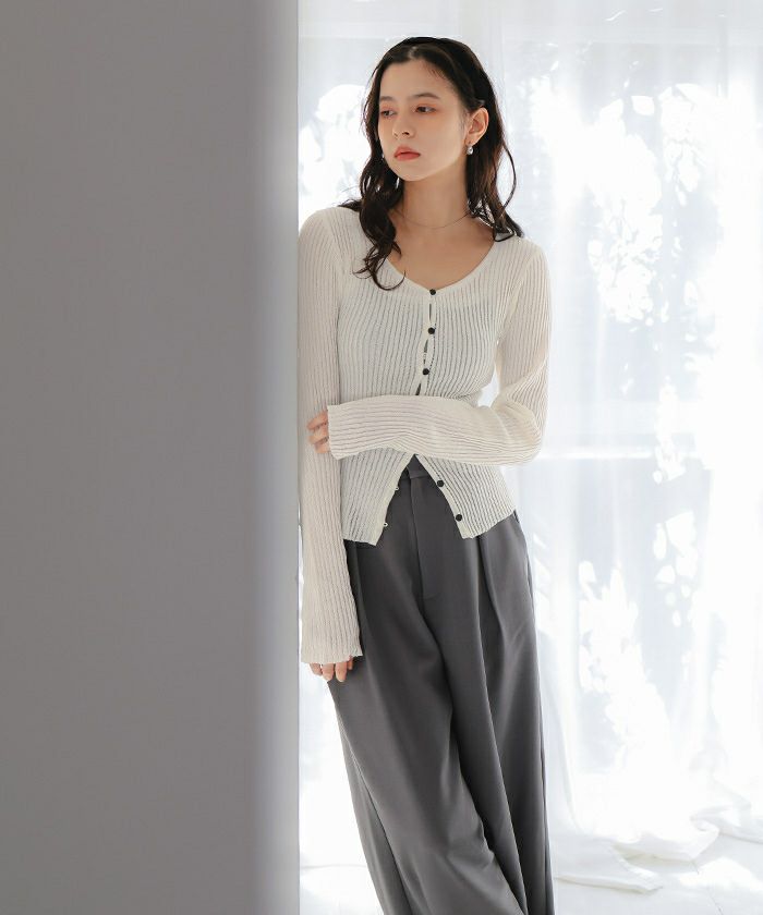 ・ワンピースやキャミソールの上にさらっと羽織るのはもちろん、ボタンを留めて一枚着としてもおすすめ