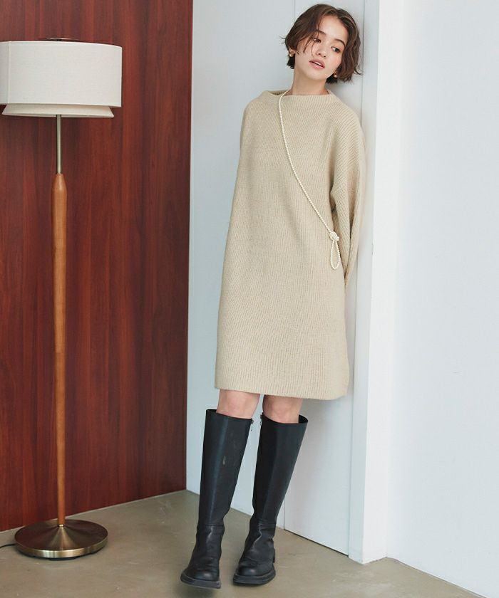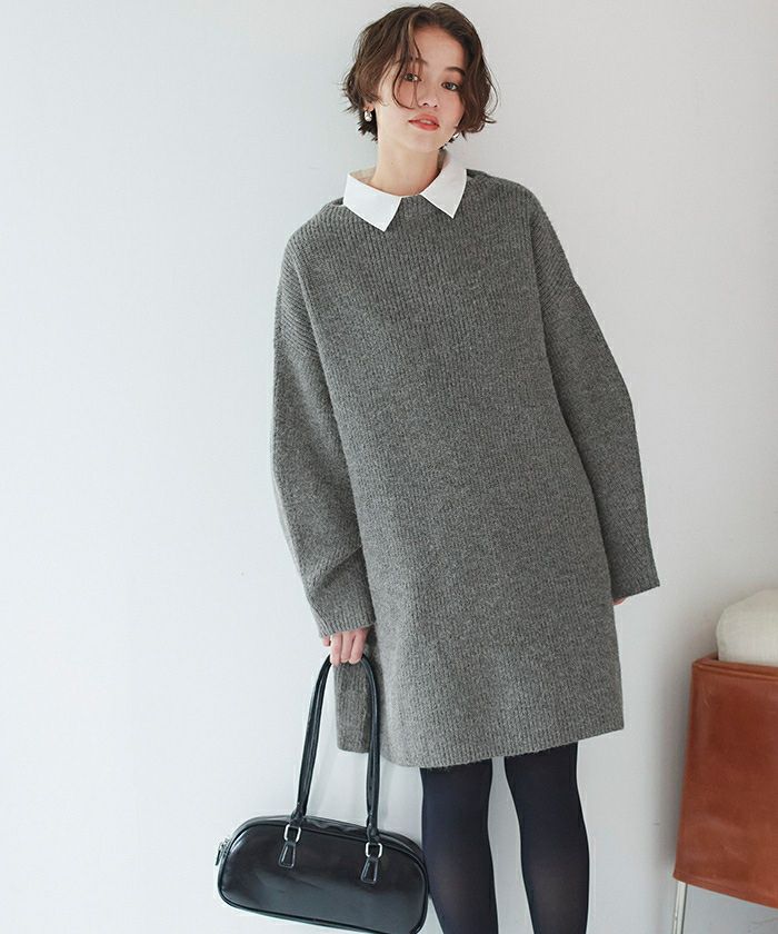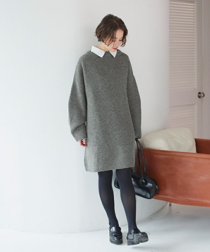 ビッグシルエットミニ丈ニットワンピース