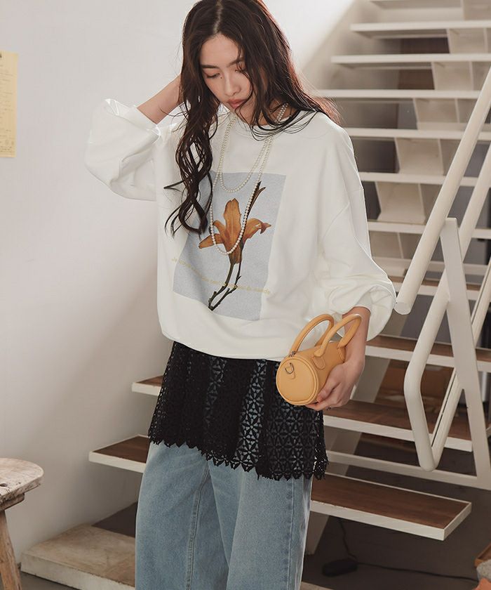 【titivate】【期間限定★SALE】 フォトプリントオーバーサイズスウェットプルオーバー
