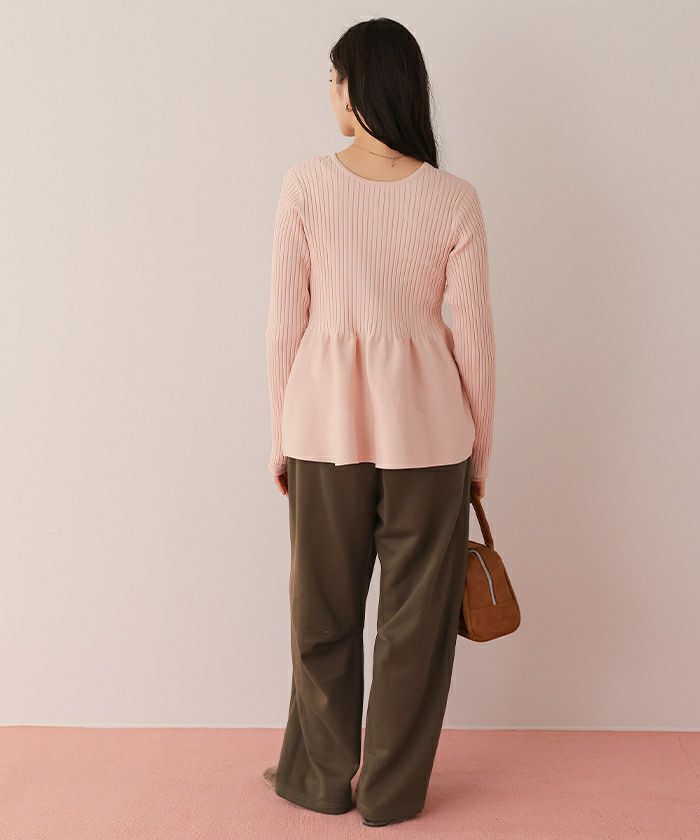 【titivate】 前後2wayヘンリーネックペプラムニットトップス