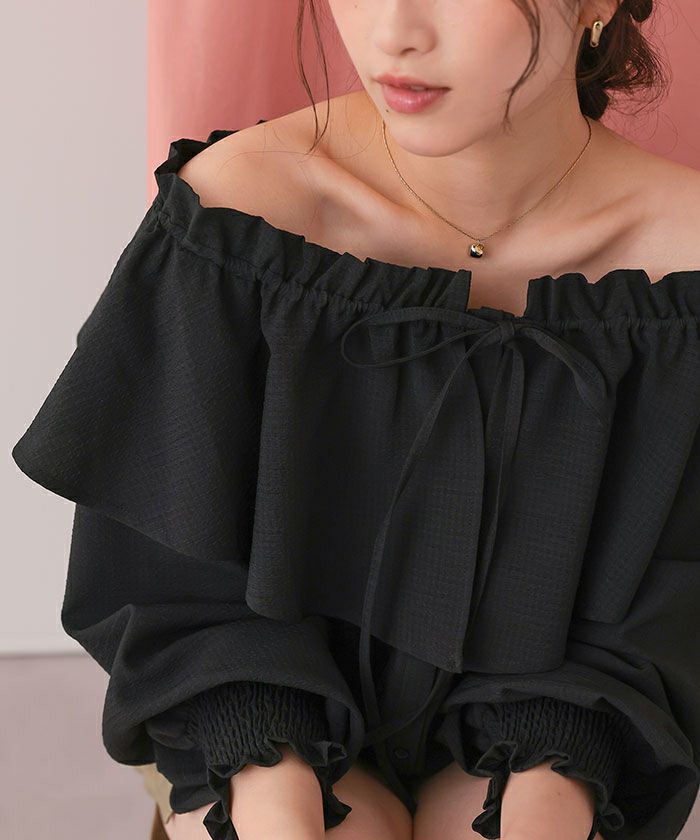 □【titivate】【期間限定★SALE】 ペプラムオフショルダーブラウス