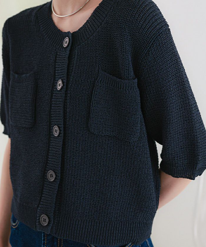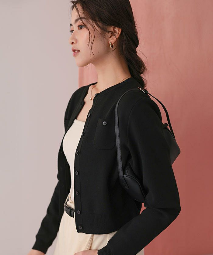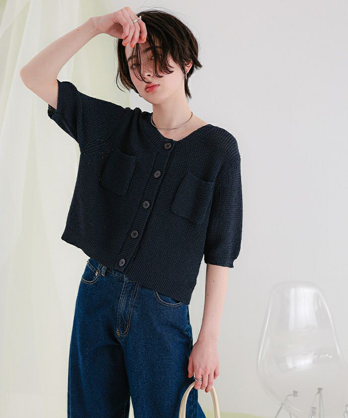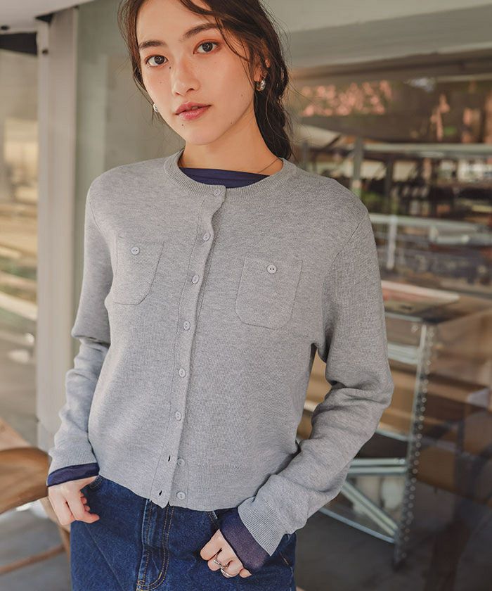 【titivate】 胸ポケットニットカーディガン