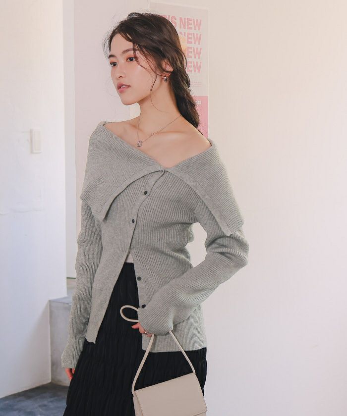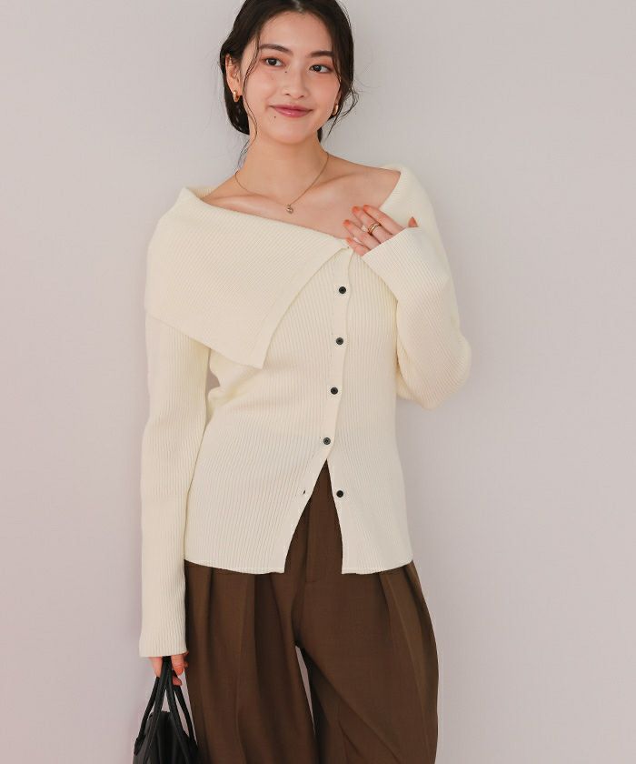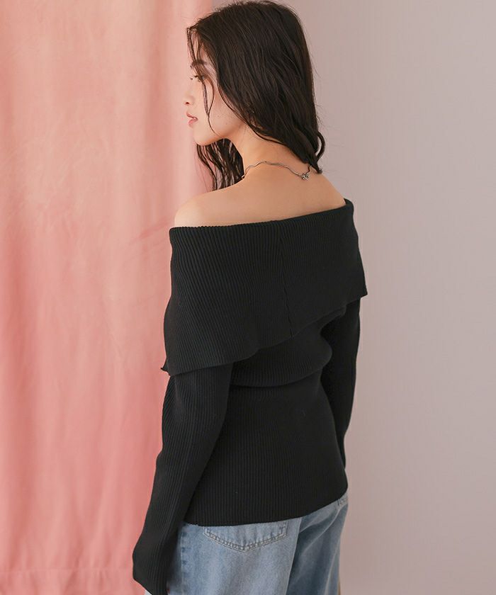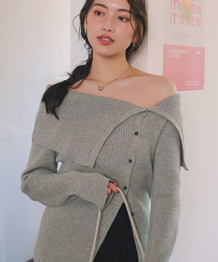 【titivate】 アシンメトリーオフショルダーニットトップス