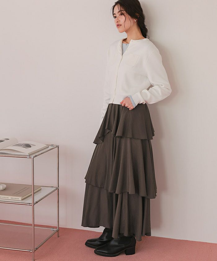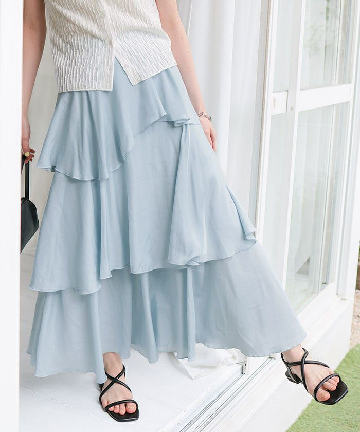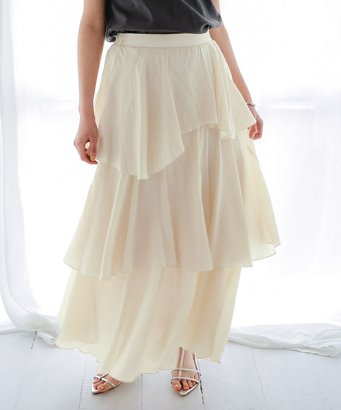 【新作★期間限定20%OFF★27日11時カラ】【低身長さん向けサイズ有り】【titivate】 ランダムヘムティアードスカート
