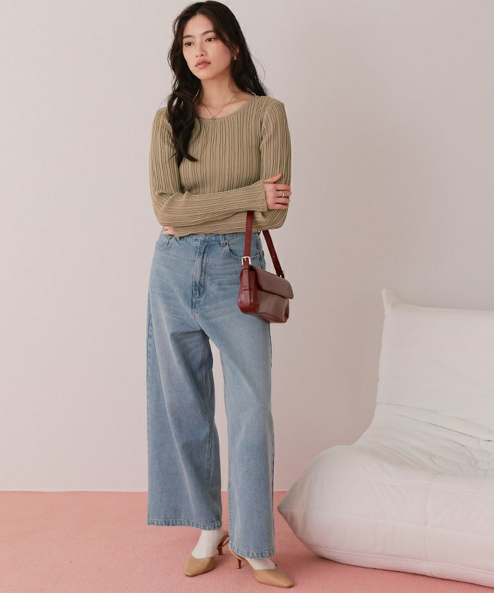 【低身長さん向けサイズ有り】【titivate】【期間限定★SALE】 ワイドルーズデニムパンツ
