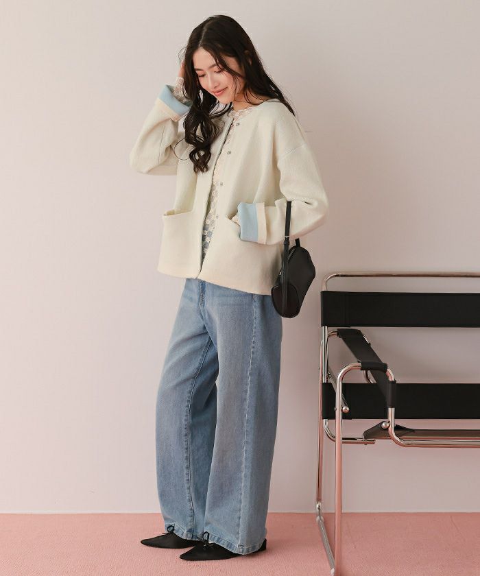【titivate】 配色デザインニットコート/カーディガン