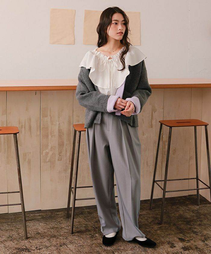 □【titivate】 フリルシャツドッキングニットカーディガン