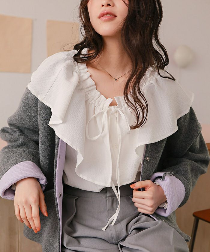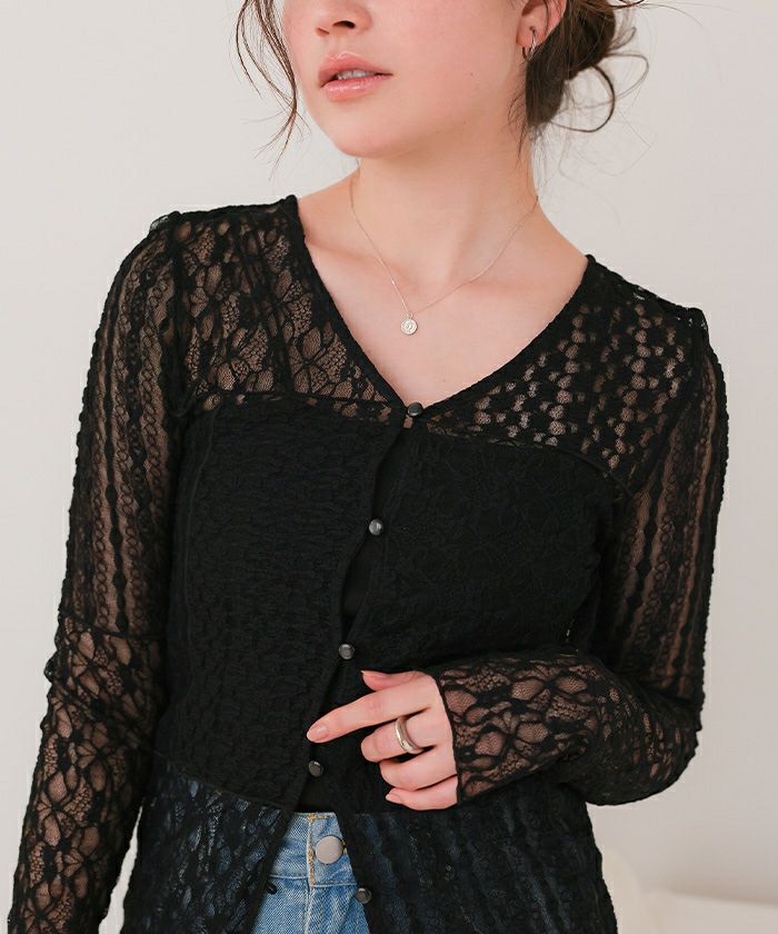 □【titivate】 フリルカラーレースブラウス