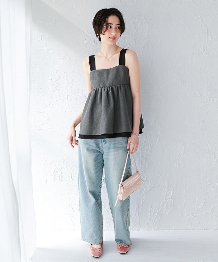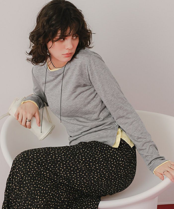 □【titivate】【期間限定★SALE】 レイヤードスリットデザイントップスセット