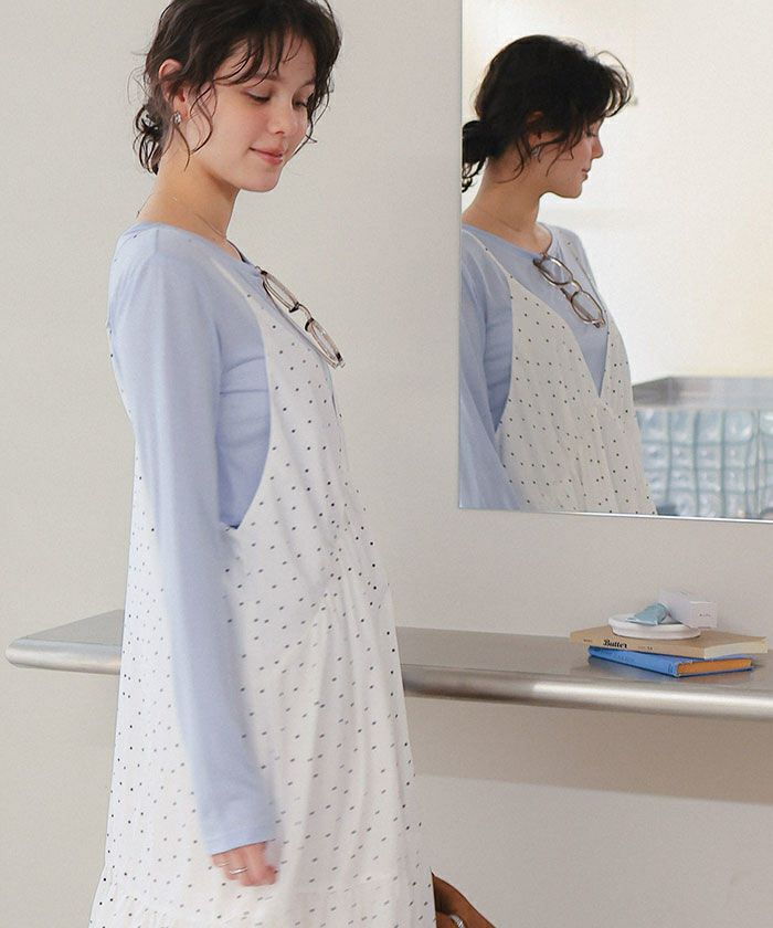□【低身長さん向けサイズ有り】【titivate】 Vネックフレアシルエットキャミソールワンピース