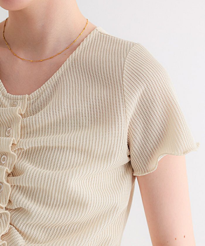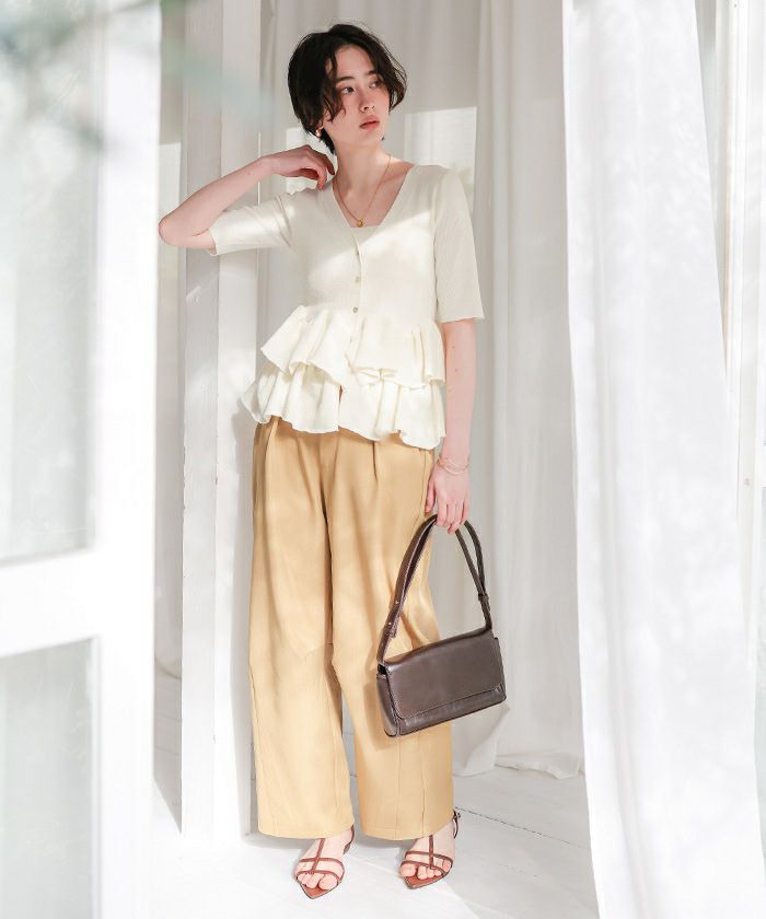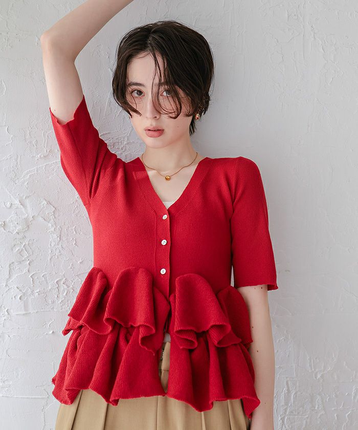 □【titivate】 UVケア/抗ピルプチフリルデザインニットカーディガン