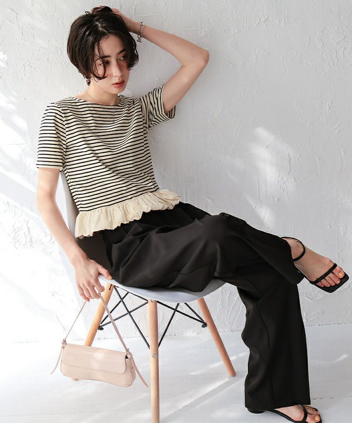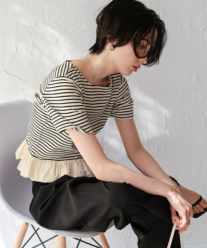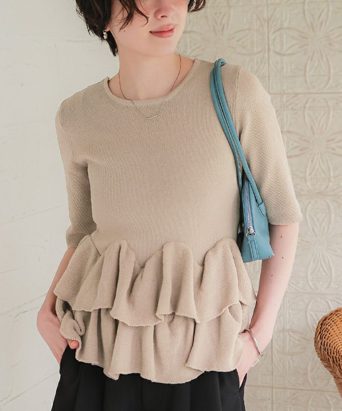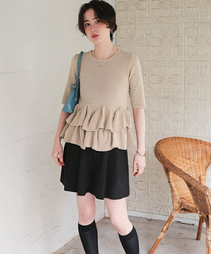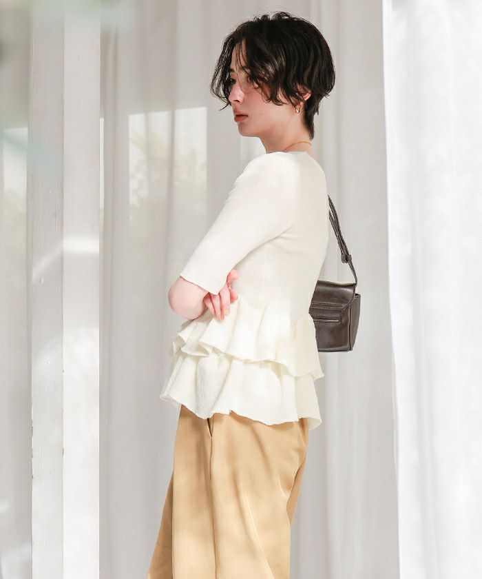 □【titivate】【期間限定★SALE】 フリルヘムドッキングニット