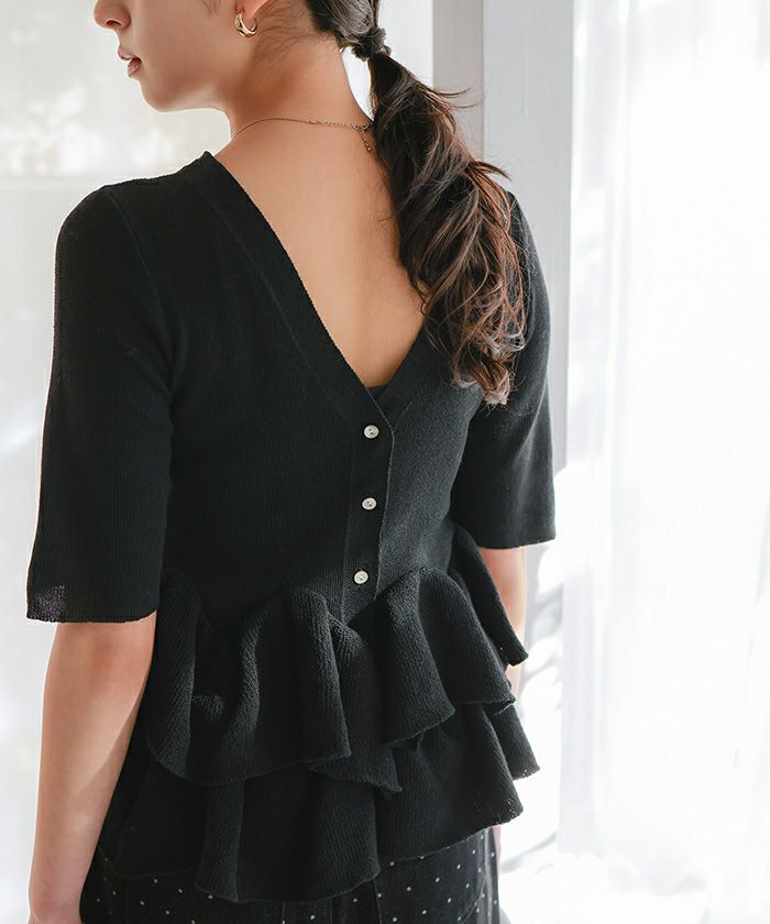 【新作★期間限定20%OFF★27日11時カラ】【titivate】 ハーフスリーブフリルヘムニットカーディガン