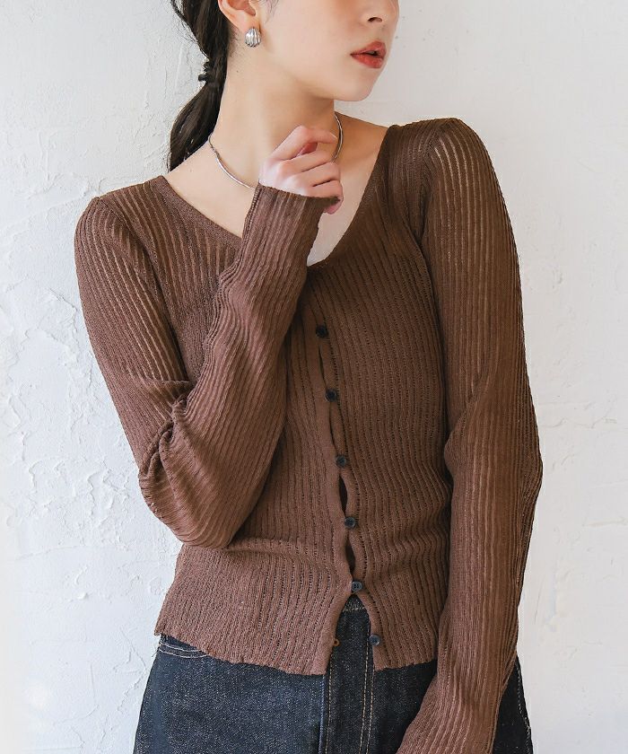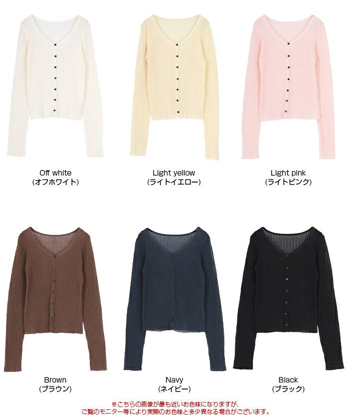 【新作★期間限定20%OFF★27日11時カラ】【titivate】 UVケア/ウォッシャブルシアーリブニットカーディガン