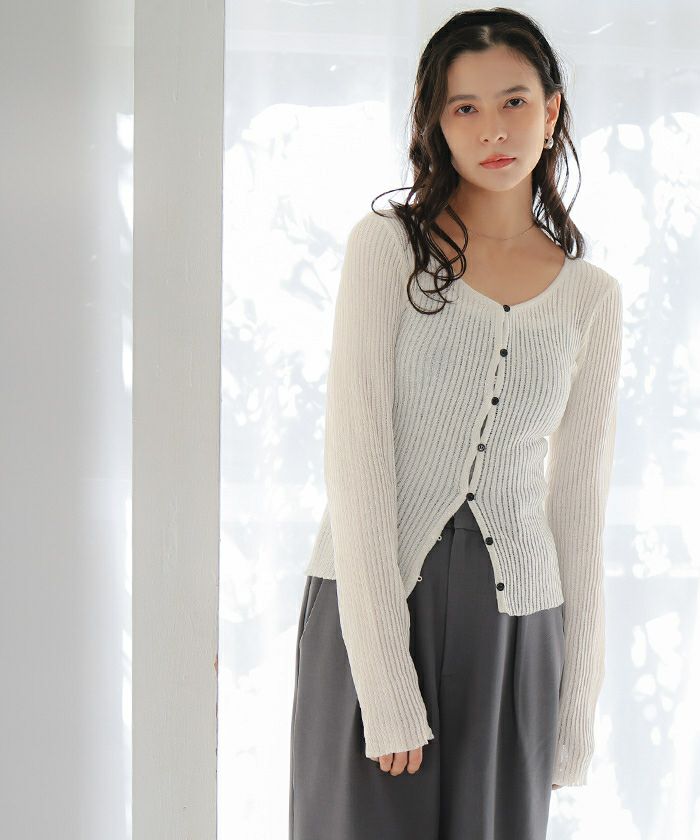 【titivate】 クリア釦UVケアニットカーディガン