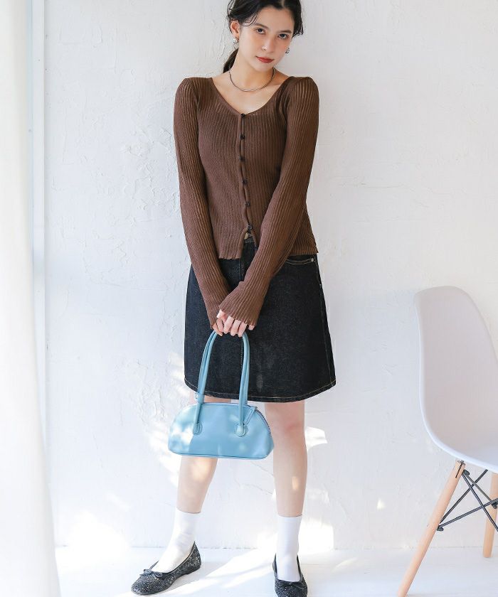 【titivate】 メニー釦リブニットカーディガン