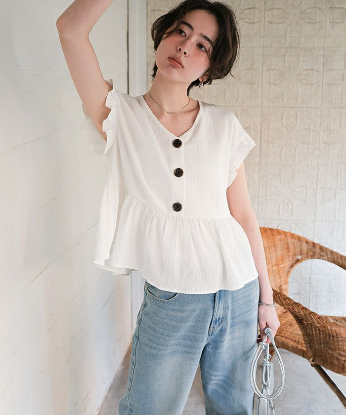 □【titivate】 ペプラムショートブラウス
