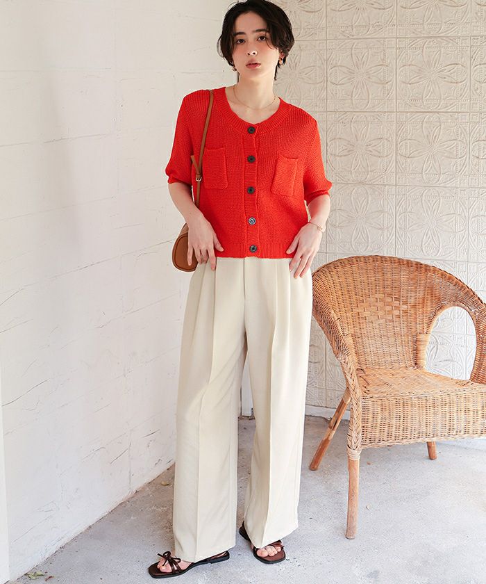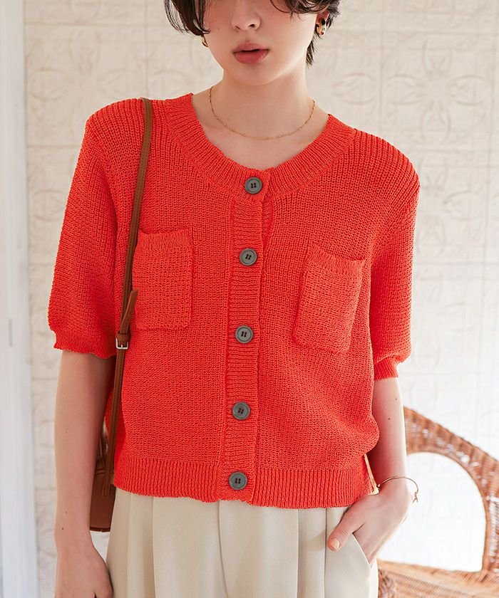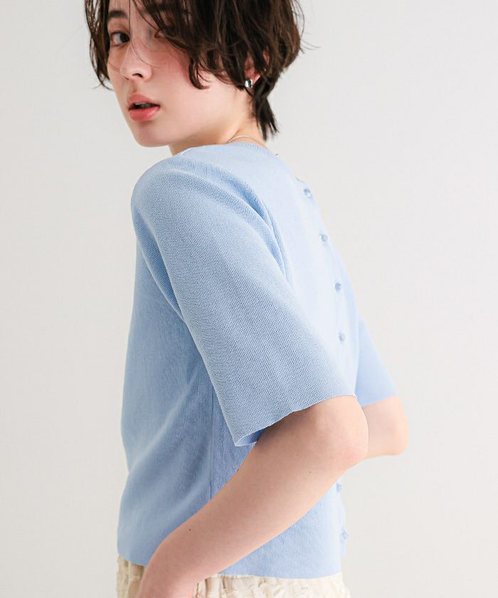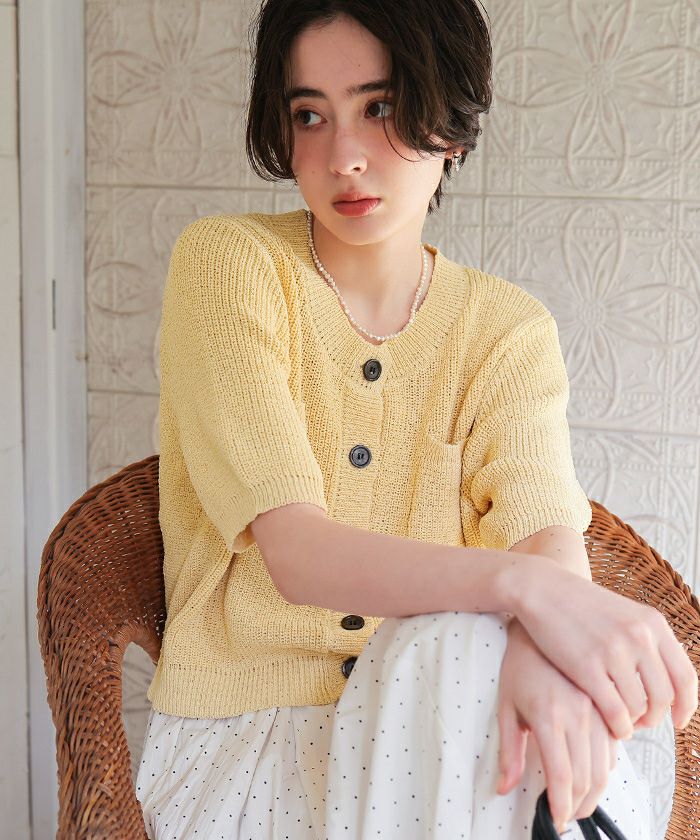 【新作★期間限定20%OFF★4日11時カラ】【titivate】 クリア釦UVケア半袖ニットカーディガン