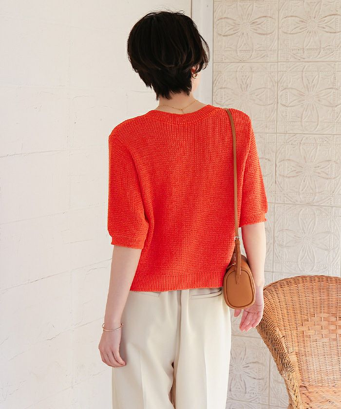 【新作★期間限定20%OFF★4日11時カラ】【titivate】 ウォッシャブルリネンタッチハーフスリーブニット