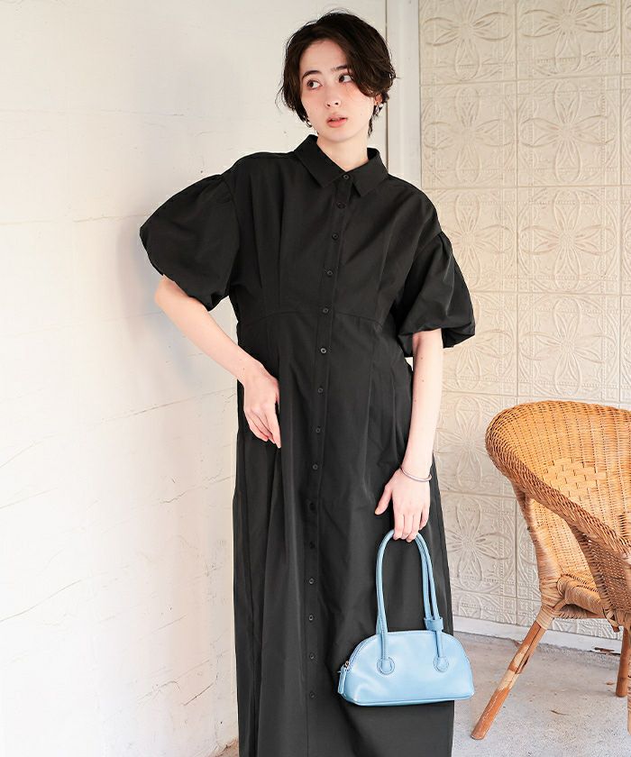 【新作★期間限定20%OFF★4日11時カラ】【titivate】 パフスリーブシャツワンピース
