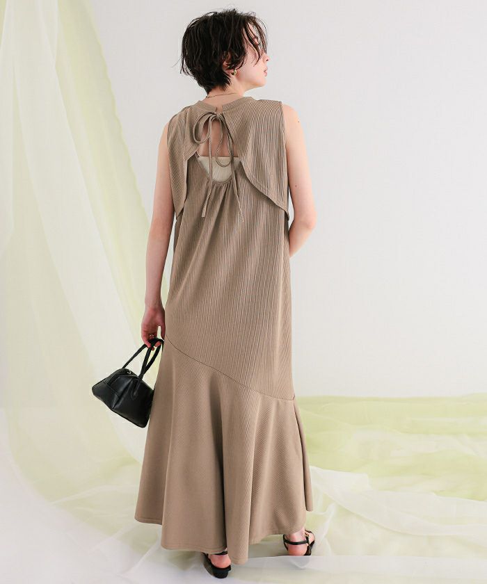 【新作★期間限定20%OFF★4日11時カラ】【低身長さん向けサイズ有り】【titivate】 リブバックシャンワンピース