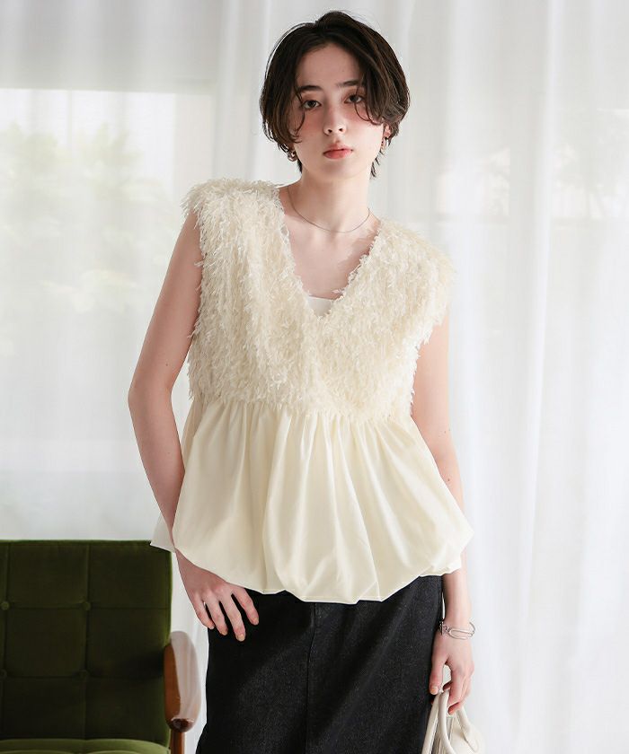 【新作★期間限定20%OFF★4日11時カラ】【titivate】 前後2wayフェザーペプラムトップス/ベスト