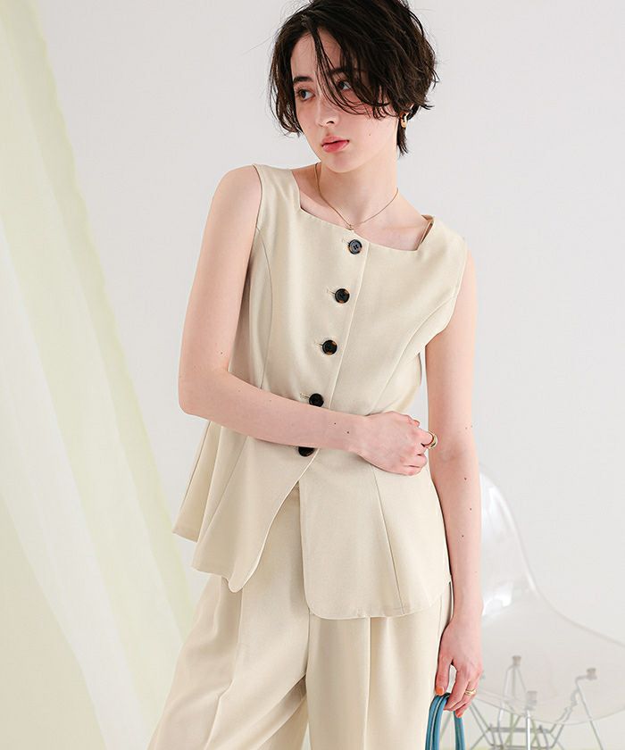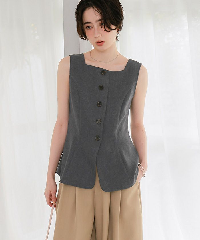 【新作★期間限定20%OFF★4日11時カラ】【titivate】 リネンライクノースリーブジレ/トップス