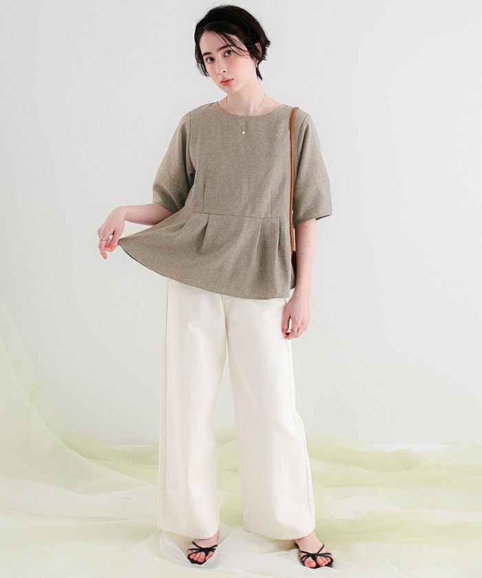 【新作★期間限定20%OFF★4日11時カラ】【titivate】 リネンライクペプラムトップス