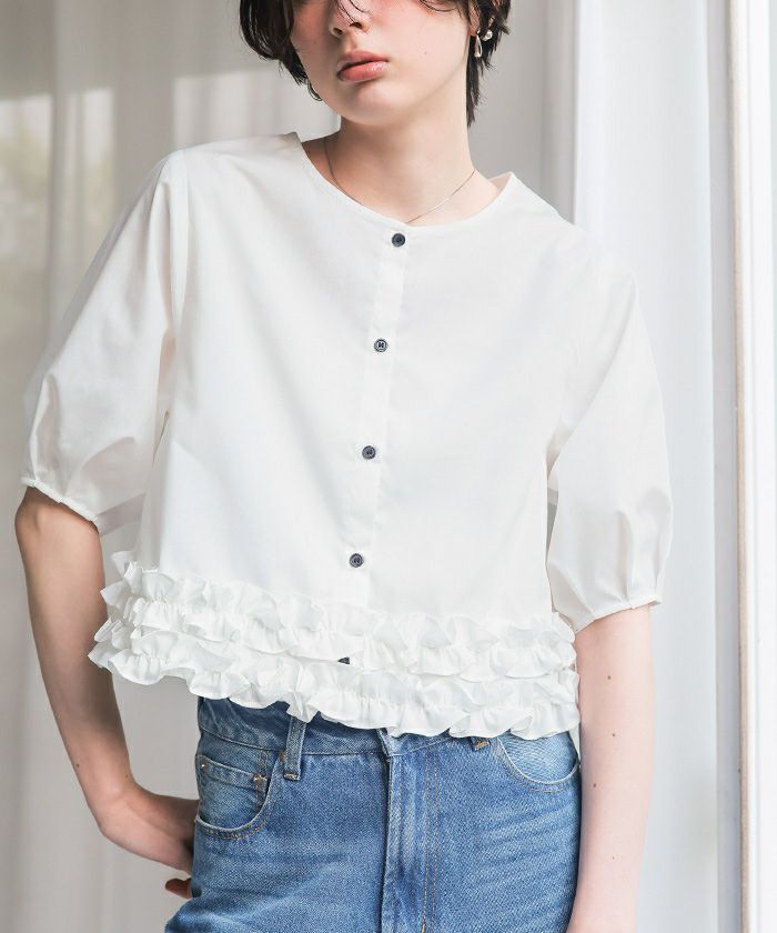 【新作★期間限定20%OFF★4日11時カラ】【titivate】 裾ダブルフリルハーフスリーブブラウス【メール便可/100】