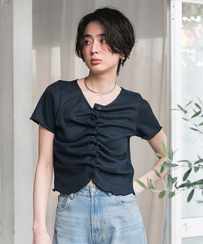 【新作★期間限定20%OFF★4日11時カラ】【titivate】 フロントギャザー半袖トップス