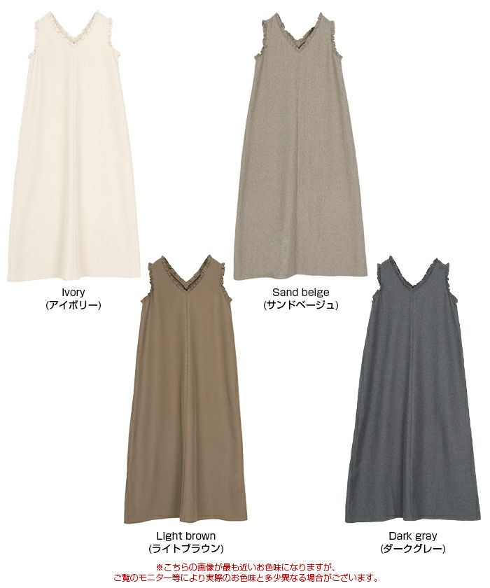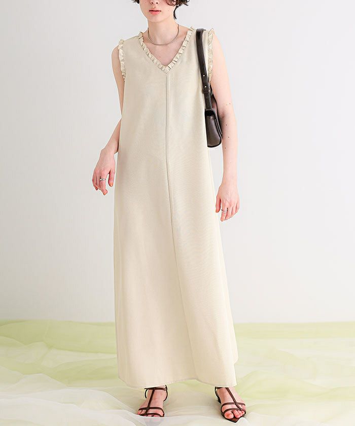 【新作★期間限定20%OFF★4日11時カラ】【低身長さん向けサイズ有り】【titivate】 リネンライクVネックフリルデザインノースリーブワンピース