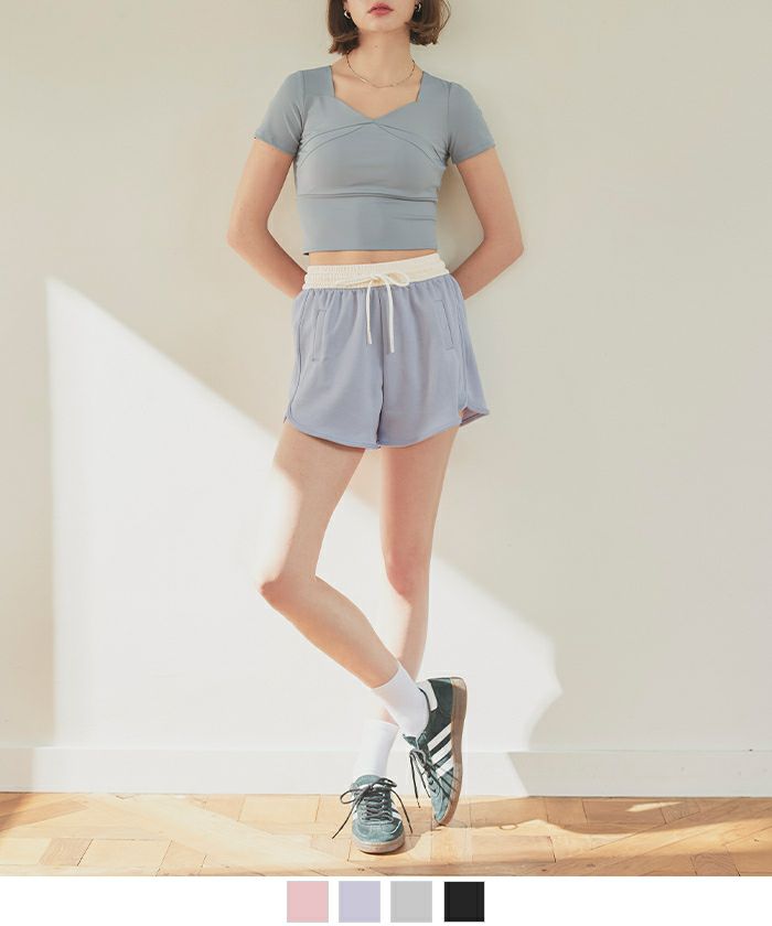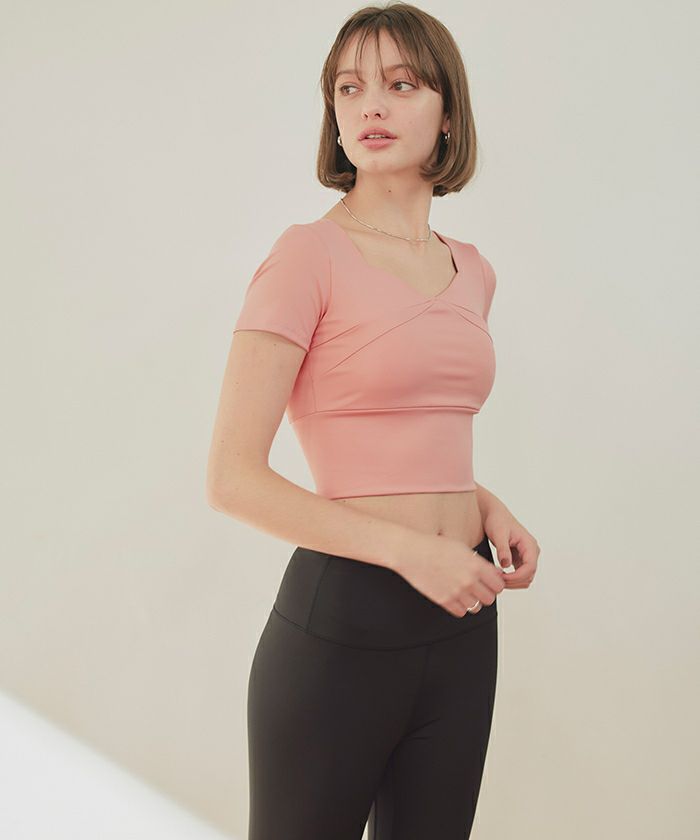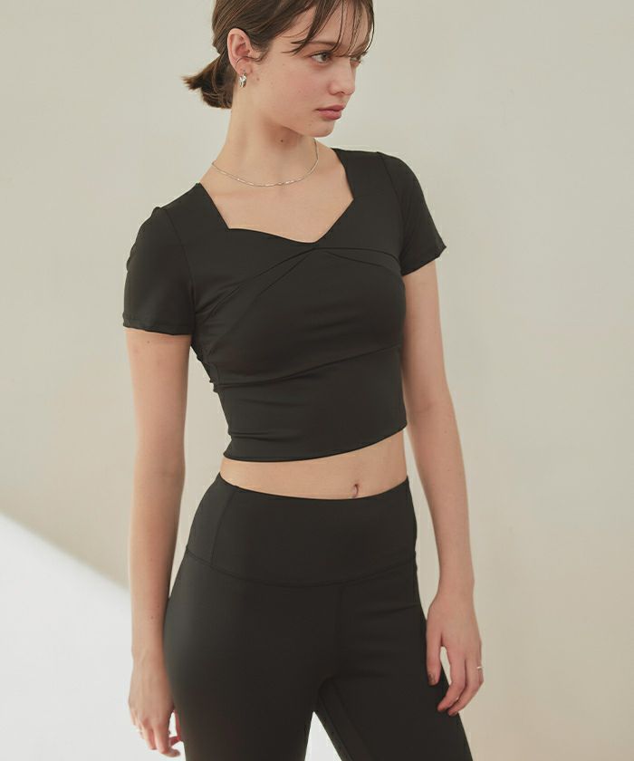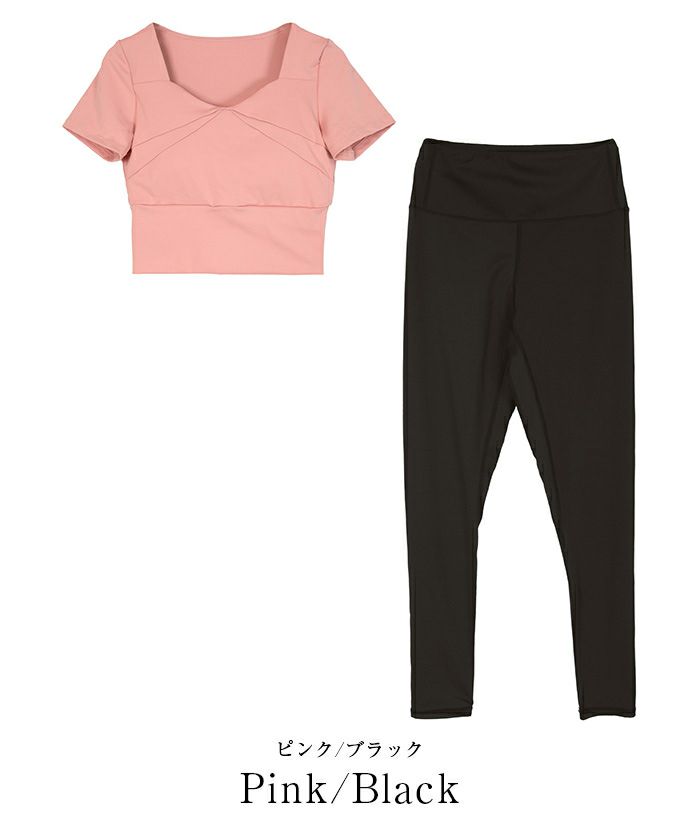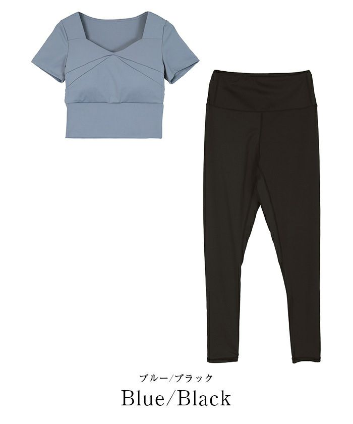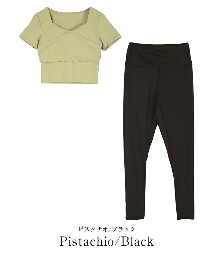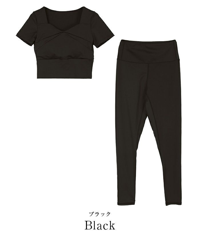ラインデザイン半袖ヨガウェアセットアップ【SEADRESS シードレス】